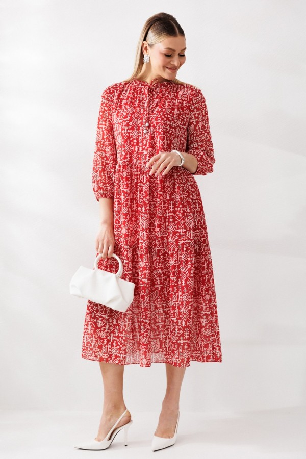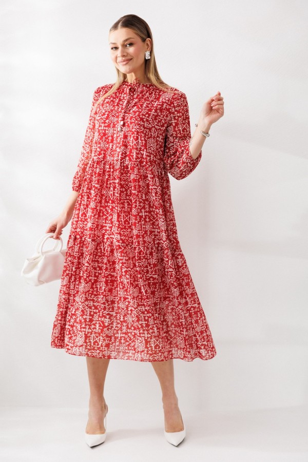 Стильное женское платье свободного силуэта, выполнено из плательной шифоновой ткани (не тянется) с дизайном «Геометрия», на подкладке (тянется).