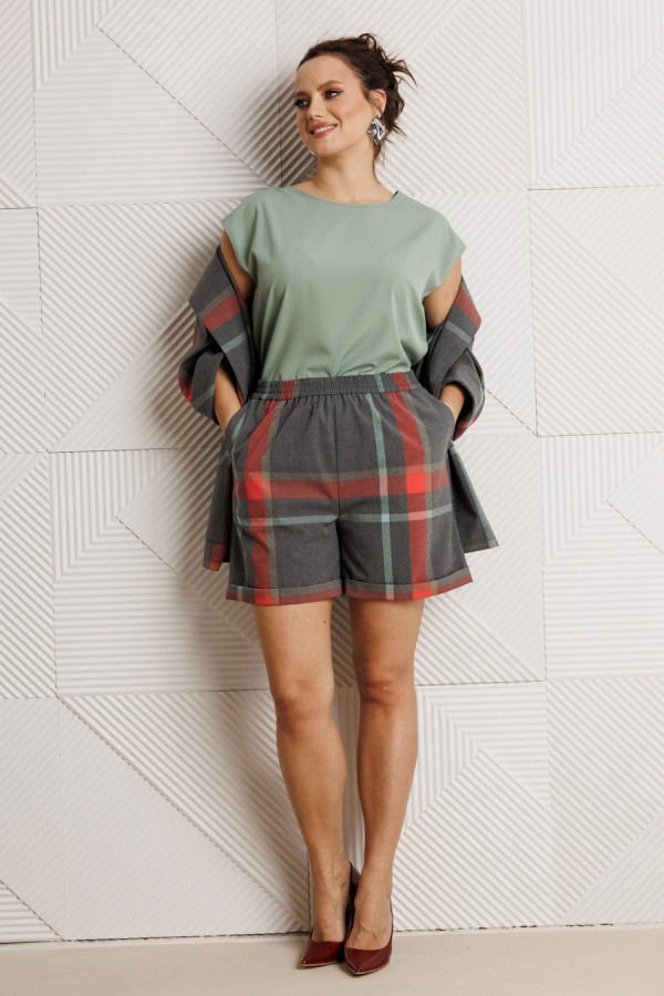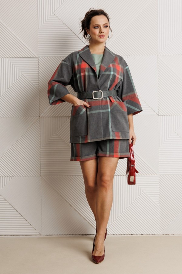 Костюм женский, состоящий из жакета, шорт и блузы.