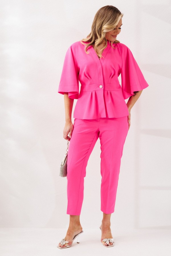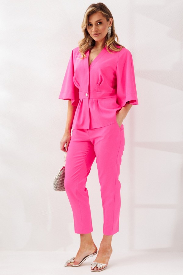 Костюм женский, состоящий из жакета и брюк, выполнен из костюмной ткани (чуть тянется).