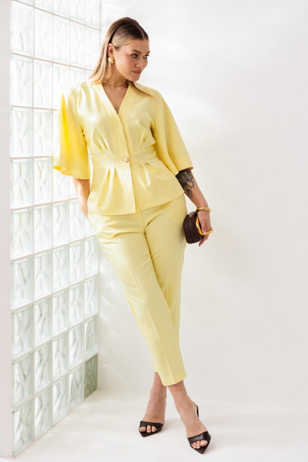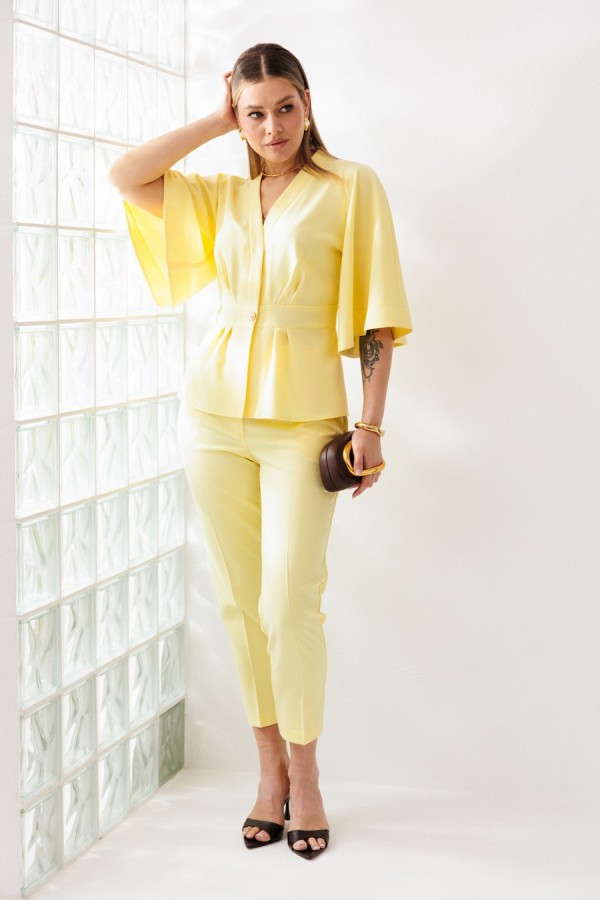 Костюм женский, состоящий из жакета и брюк, выполнен из костюмной ткани (чуть тянется).