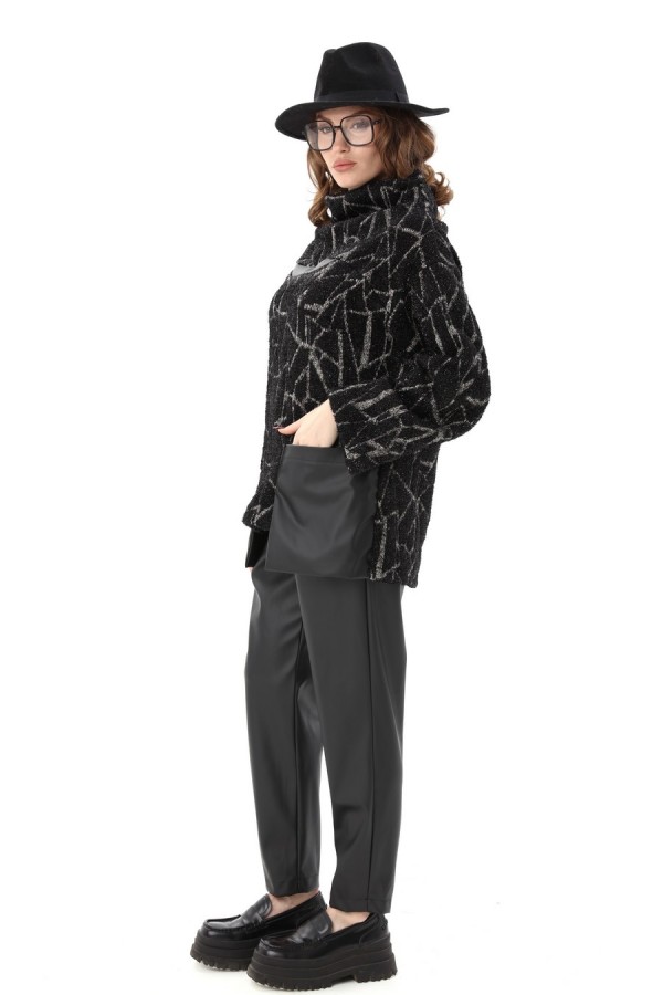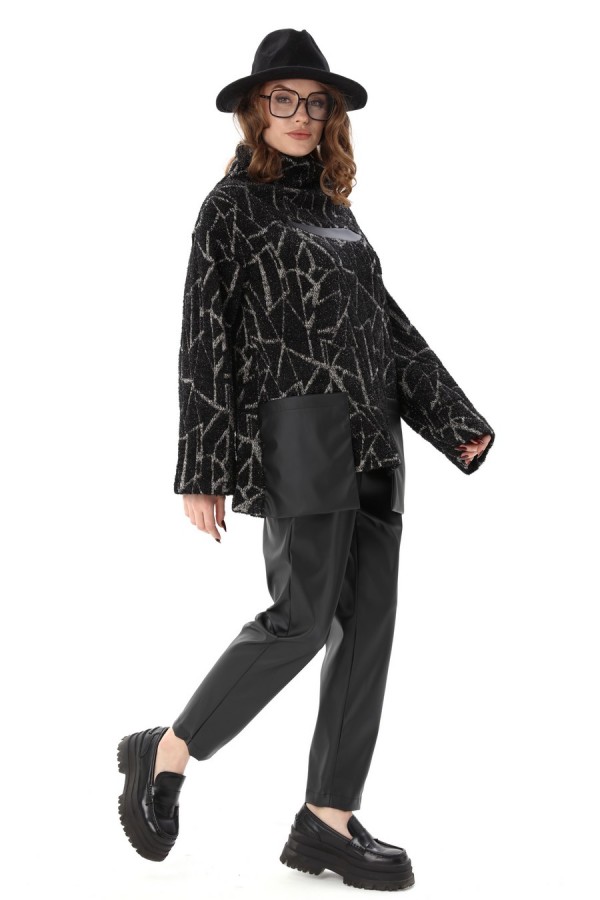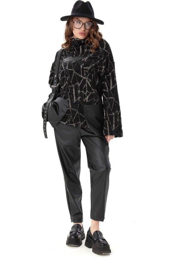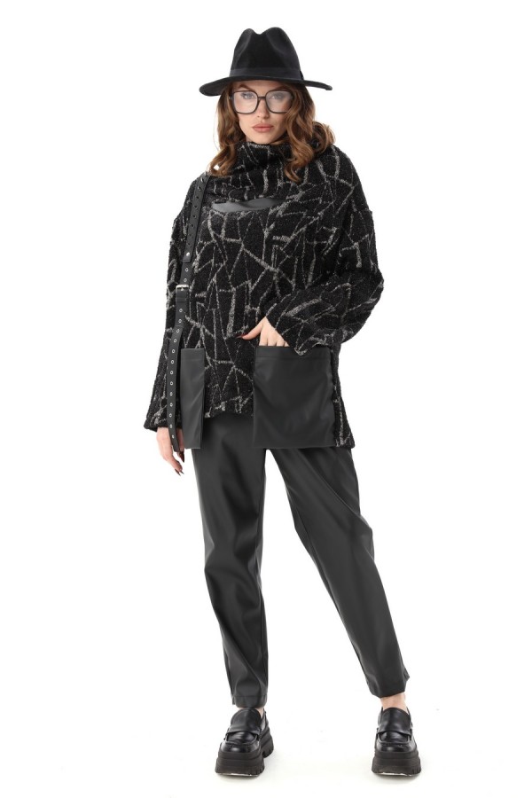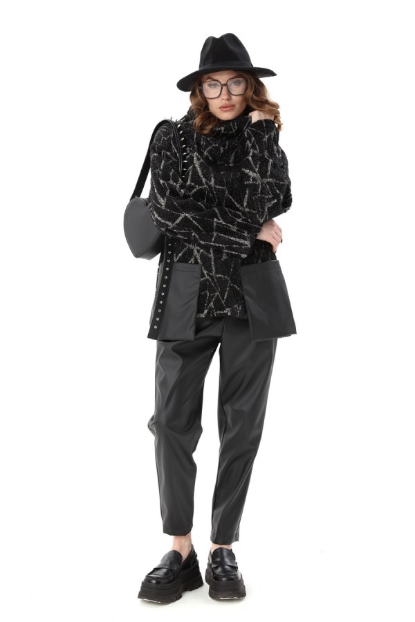Состав:49% хлопок, 44% пэ, 7% люрекс, вставки - экокожа, 96% пэ, 4% спандекс