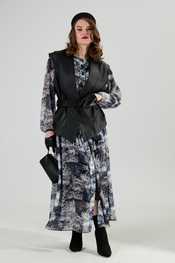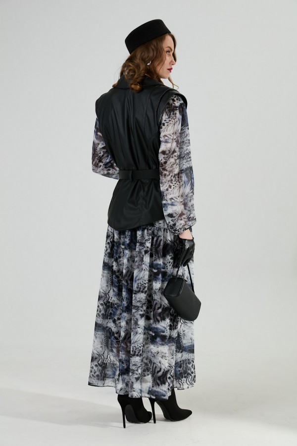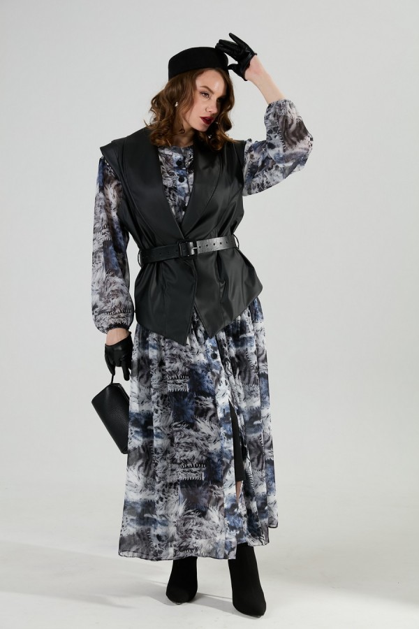 Состав:платье верхнее и нижнее - 100% пэ, шифон, жилет - 96% пэ, 4% спандекс, экокожа