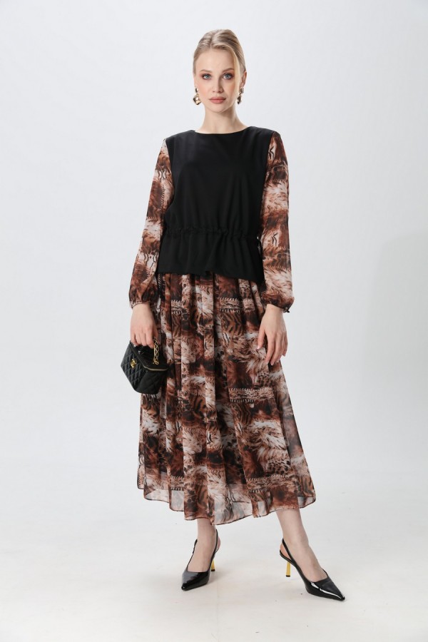 Состав:лиф - 95% хлопок, 5% эластан, трикотаж, рукава и юбка -100% полиэстер, шифон
