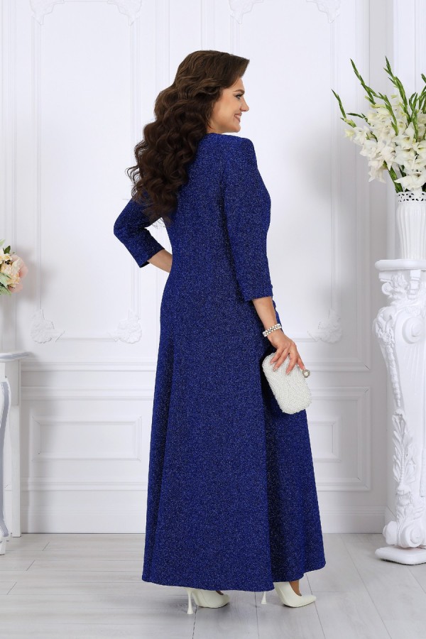 Элегантное вечернее платье из люрекса — создано для особенных событий. Изысканное длинное платье, которое подчеркивает женственность и утонченность. Выполнено из благородного трикотажного полотна с мерцающим люрексом — ткань мягко драпируется, не сковывает движения и эффектно играет при каждом шаге. Асимметричный перед с запахом и деликатными драпировками визуально стройнит и формирует правильный силуэт для женщин с формами. Глубокий разрез добавляет образу легкой смелости, оставаясь элегантным и уместным на торжественных мероприятиях. Платье женское, расширенное к низу, выполнено из трикотажного полотна с фактурной лицевой стороной «люрекс». Модель на трикотажной подкладке, с плечевыми накладками. Перед платья асимметричный, состоит из двух деталей, скрепленных на запах. На левой детали переда обработан рельефный шов с разрезом по низу. Правая деталь переда задрапирована сборкой и входит в рельеф на участке между двумя горизонтальными подрезами боковой части переда. На спинке обработаны талиевые вытачки и средний шов с застежкой на потайную тесьму-«молнию» (50 см). Рукав трехчетвертной. Длина платья – 137 см. Длина рукава – 47 см.