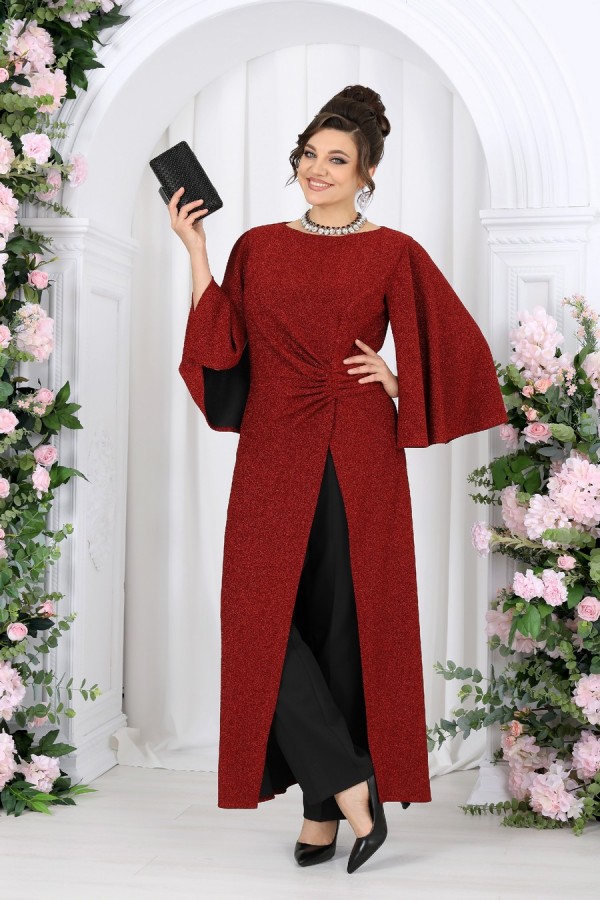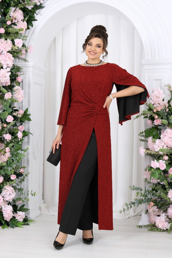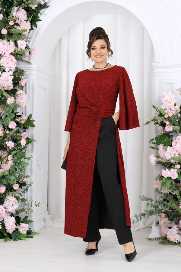 Состав:туника - полиэстер 70%, люрекс 25%, спандекс 5%; подкладка туники – ПЭ 100%; брюки – полиэстер 97%, спандекс 3%;