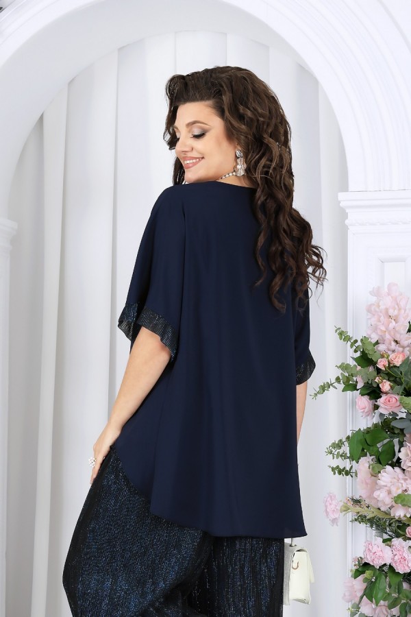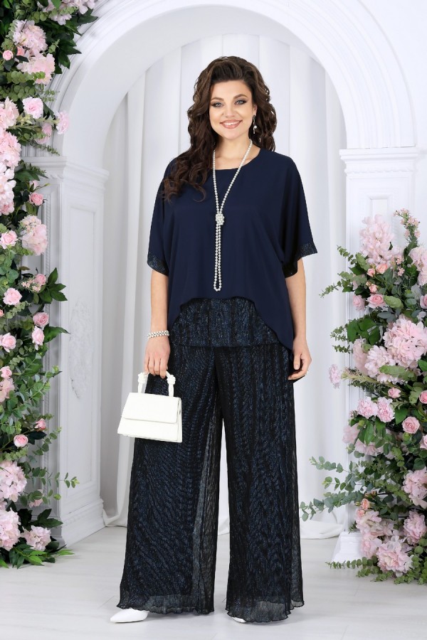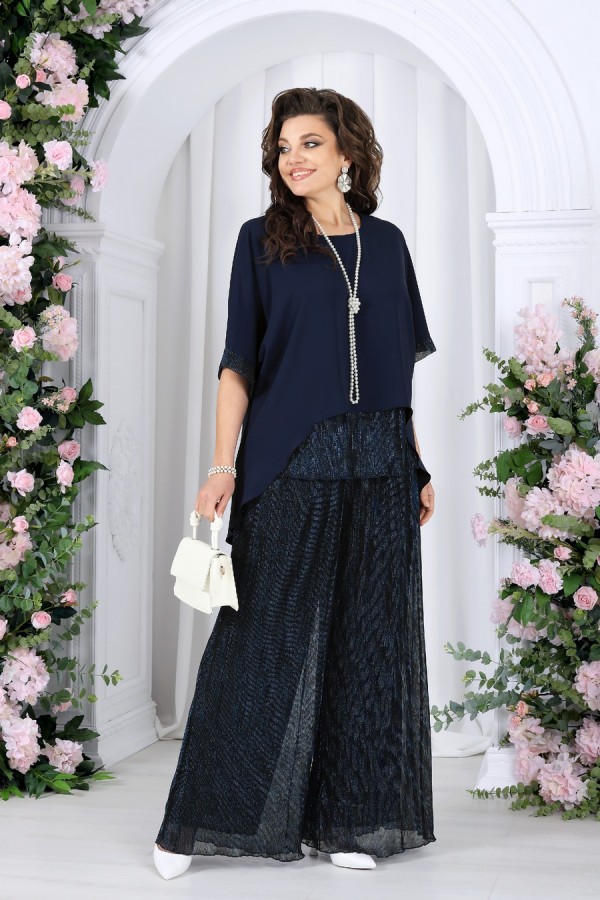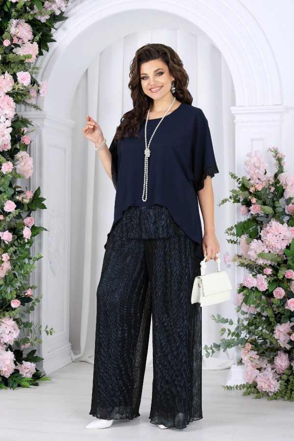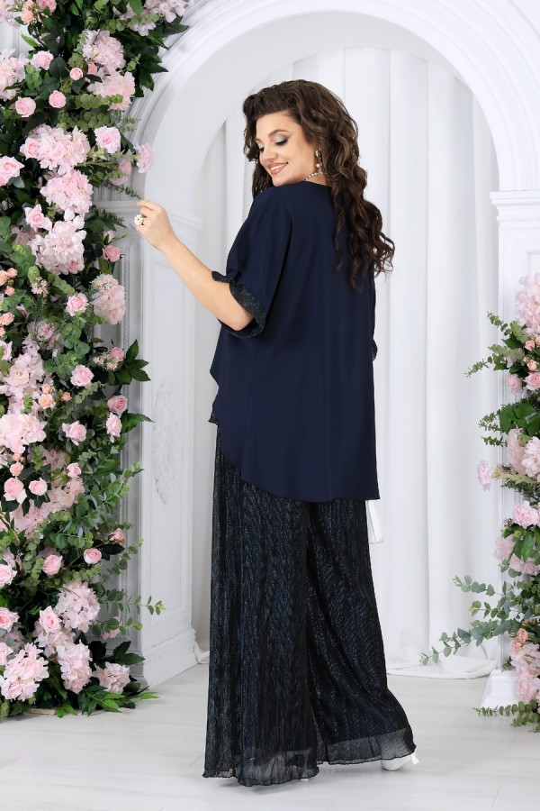 Состав:блузка -- полиэстер 100%; подкладка блузки и брюк – ПЭ 100%; брюки -- полиэстер 50%, люрекс 50%