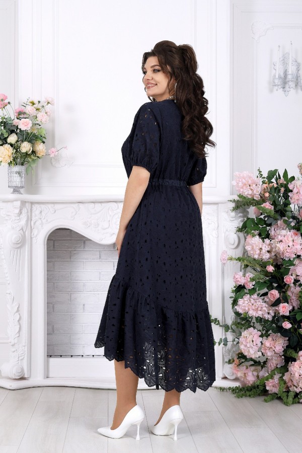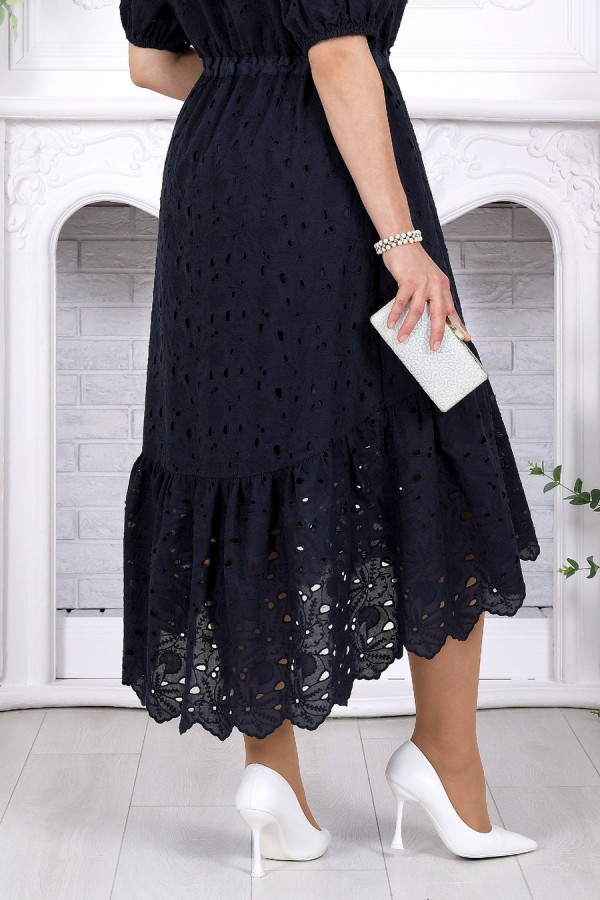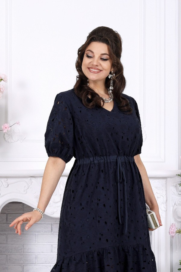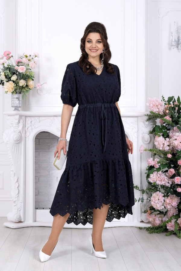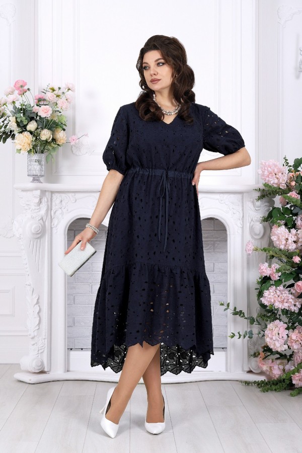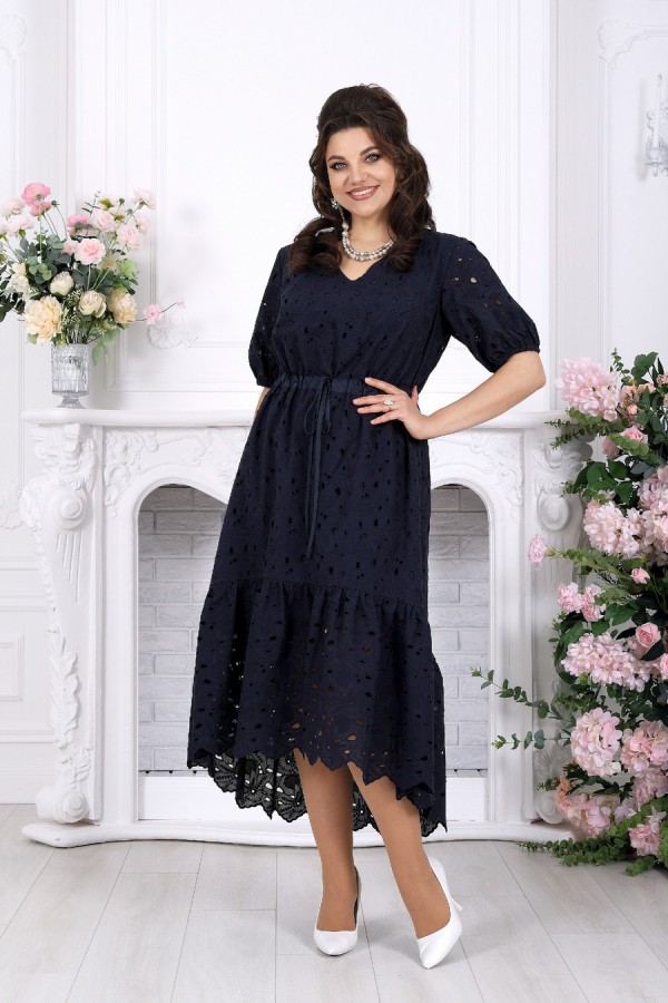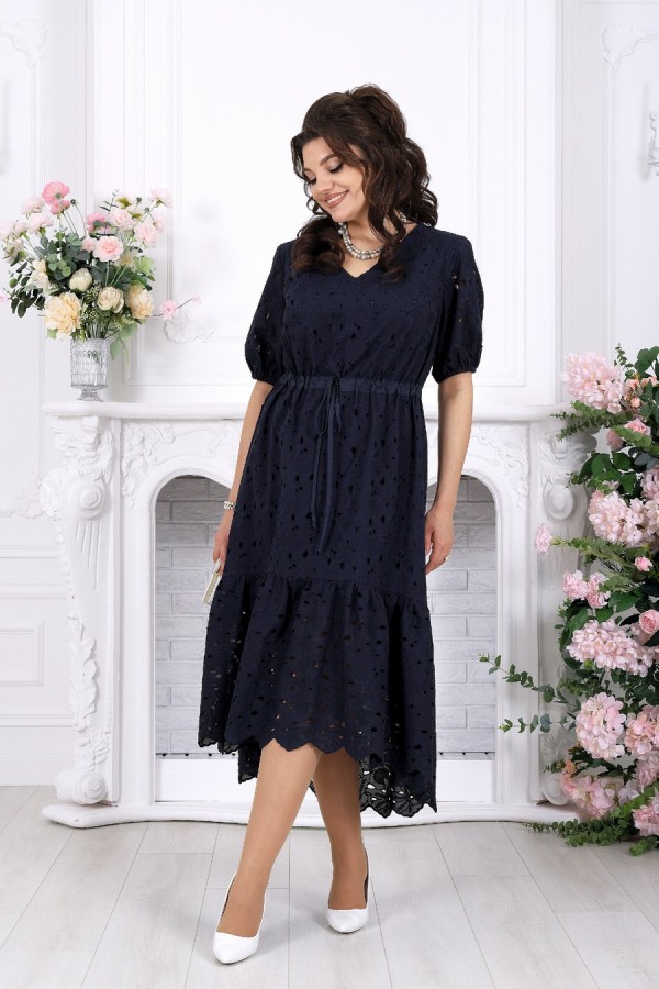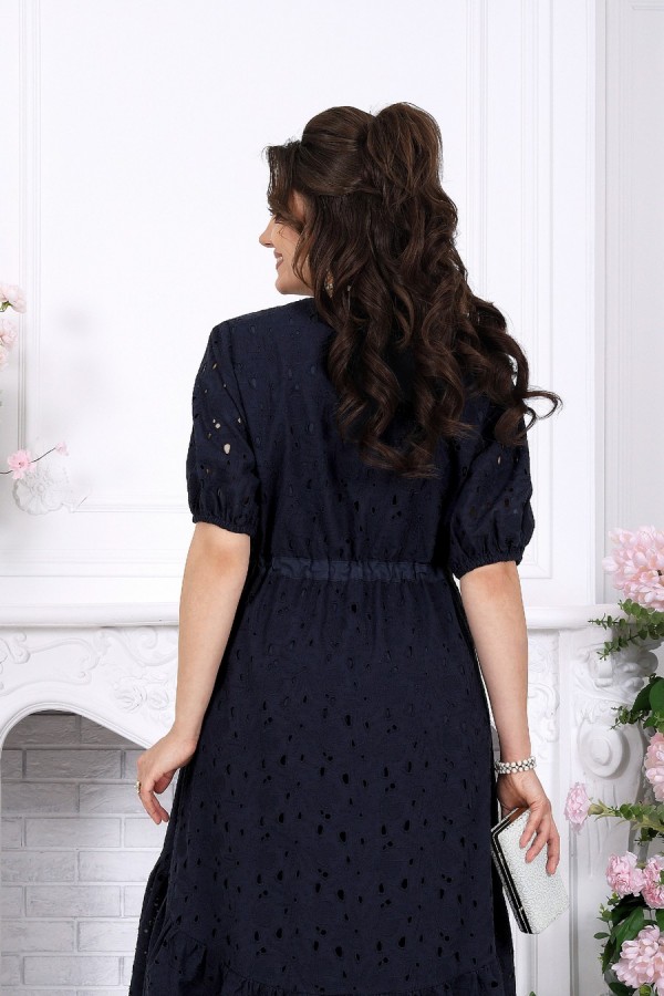 Лёгкость кружева, в которой живёт настроение праздника. Это платье словно создано для тёплых вечеров, особых встреч и тех моментов, когда хочется выглядеть особенно красиво — нежно, женственно и по-настоящему нарядно. Ажурное хлопковое ришелье придаёт образу изысканность и лёгкость, создавая эффект дорогой, дышащей фактуры с деликатной прозрачностью. А-силуэт мягко струится по фигуре, скрывая нюансы и подчёркивая женственность. Кулиса на талии с аккуратным шнуром позволяет регулировать посадку, создавая комфорт и гармоничные пропорции. V-образный вырез визуально вытягивает силуэт и добавляет образу элегантности. Короткий рукав с мягкой сборкой на резинке выглядит воздушно и не сковывает движения. Хлопковая подкладка дарит уверенность и комфорт даже в тёплую погоду, а натуральная ткань приятна к телу и позволяет коже дышать. Нижний волан с изящным фестоном добавляет динамики и завершает образ лёгким романтичным акцентом — при движении платье красиво играет, подчёркивая праздничное настроение. Почему выбирают именно его: • Праздничное и нарядное платье с эффектной кружевной фактурой • Универсальный фасон — подходит для больших размеров и для полных • Натуральная хлопковая ткань — комфорт даже в жару • Регулируемая талия — идеальная посадка по фигуре • Подходит для вечера, торжества, отпуска и городских выходов • Белорусское качество и продуманное лекало Идеальный выбор, когда хочется лёгкости, уюта и безупречного образа с ноткой праздника. Платье женское, А - силуэта, выполнено из хлопкового ришелье. Модель на хлопковой подкладке, без плечевых накладок. Спереди оформлены нагрудные вытачки, направленные от пройм. По линии талии переда и спинки, настрочена кулиса из хлопчатобумажной ткани-компаньона, втянутой в неё шнура из этой же ткани. По низу платья пришит присборенный волан. Низ волана с фестоном. По спинке горловина округлой формы, по переду V-образная. Рукав короткий, втачной, по низу собран на резинку, шириной 1 см. Длина платья -129 см; длина рукава - 32 см.