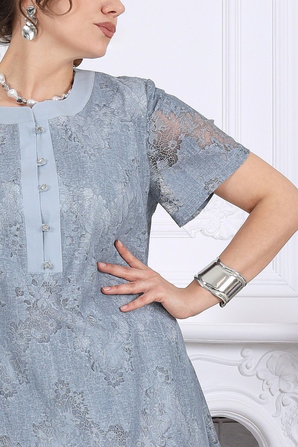 Платье, в котором хочется быть. Это универсальное праздничное платье легко адаптируется под разные события: добавьте каблуки и аксессуары — и перед вами роскошный вечерний образ, или оставьте минимализм — для элегантного дневного выхода. Нежный хлопковый гипюр создает эффект легкой дымки на коже. Платье красиво играет на свету, подчеркивая фактуру кружева и добавляя образу благородства. Это платье — про утонченность без усилий. Легкое кружево, мягкий силуэт и продуманные детали создают образ, который выглядит элегантно в любой ситуации. А-силуэт мягко скользит по фигуре, не подчеркивая лишнего и даря ощущение свободы. Полупрозрачный гипюр с деликатным рисунком добавляет глубину образу, а хлопковая подкладка делает его комфортным даже в течение долгого дня. Это платье не требует сложных сочетаний — оно само становится завершённым образом. Платье женское А-силуэта, выполнено из гипюра х/б. Модель на х/б подкладке. По центру полочки оформлена застежка с притачными планками до линии груди. На планке обработана застёжка на 5 навесных петель и 5 пуговиц. Рукав в платье втачной короткий. Перед с нагрудными вытачками, направленными от пройм. Горловина оформлена воротником стойка. По боковым швам, внизу платья оформлены фигурные разрезы. Длина платья – см (50-54 р-р), см (56-66 р-р); длина рукава- см.