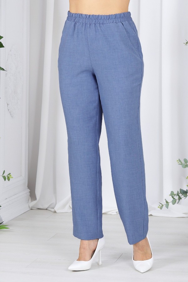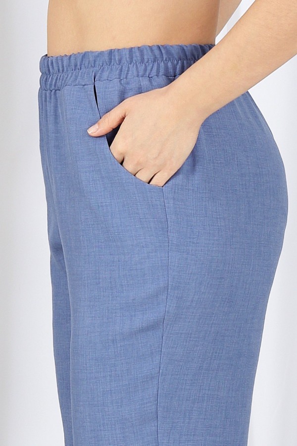 Этот костюм - идеальное сочетание стиля, комфорта и практичности. Он подойдет как для деловых встреч, так и для повседневного использования, дополняя ваш образ уверенностью и элегантностью. Если вам нравится изделия из натурального льна, но надоело ходить всегда в мятой одежде, то ткань лен вишер эта ваше находка. Хотя в составе ткани не присутствует лен, она прекрасно дышит и полностью повторяет текстуру натурального льна, а самое главное она практически не мнется. Комплект брючный 3-х предметный, состоящий из жакета, джемпера и брюк. Жакет прямого силуэта, выполнен из ткани «лен-вишер». Модель без подкладки, с плечевыми накладками и однобортной внешней застежкой с отрезными планками на 7 петель и 7 пуговиц. Перед с нагрудными вытачками, выходящими из пройм. В нижней части переда настрочены накладные карманы с бантовой складкой посередине кармана и клапаны, застегивающиеся на 1 петлю и 1 пуговицу. По спинке и частично по переду настрочена кулиса, в которую втянут поясок из основной ткани. Для регулировки сборки по кулисе предусмотрены фиксаторы, концы пояса оформлены наконечниками. Горловина округлой формы со стояче-отложным воротником на отрезной стойке. Рукав втачной, длинный, с притачной манжетой, застегивающейся на 1 петлю и 1 пуговицу; по середине рукава настрочена пата, застегивающаяся на 1 петлю и 1 пуговицу, что позволяет регулировать длину рукава. Длина жакета - 71 см (46-50 р-р), 72 см (52-60 р-р), 73 см (62-66 р-р). Длина рукава (с манжетой) - 61 см. Джемпер полуприлегающего силуэта, выполнен из хлопкового трикотажного полотна. Перед с нагрудными вытачками, выходящими из пройм. От горловины вниз застрочены 4 складки. Горловина переда и спинки округлой формы, по переду углубленная. Срезы горловин окантованы косой бейкой. Рукав втачной, короткий. Длина джемпера -60 см (46-50 р-р), 65 см (52-60 р-р), 67 см (62-66 р-р). Длина рукава – 24,5 см (46-50 р-р), 25,5 см (52-60 р-р), 26,5 (62-66 р-р). Брюки классические длинные, прямого силуэта, с посадкой на талии, выполнены из ткани «лен-вишер». Модель без застёжки, на притачном поясе, с эластичной лентой внутри. Передние половинки брюк с боковыми наклонными карманами. Длина брюк по боковому (с поясом)-103 см (46-54 р-р), 104,5 см (56-60 р-р), 106 см (62-66 р-р).