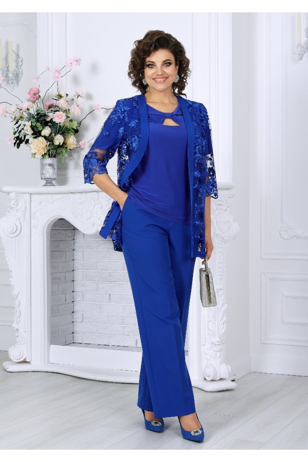 Состав:кардиган -- полиэстер 100%; блузка – полиэстер 96%, спандекс 4%, брюки -- полиэстер 97%, спандекс 3%;