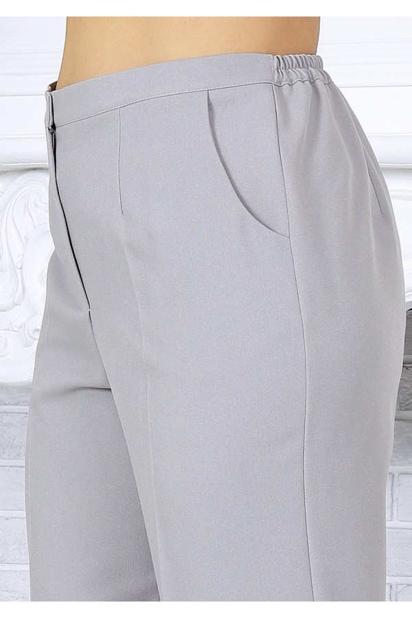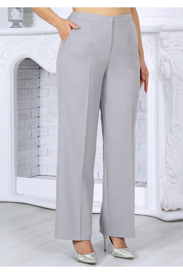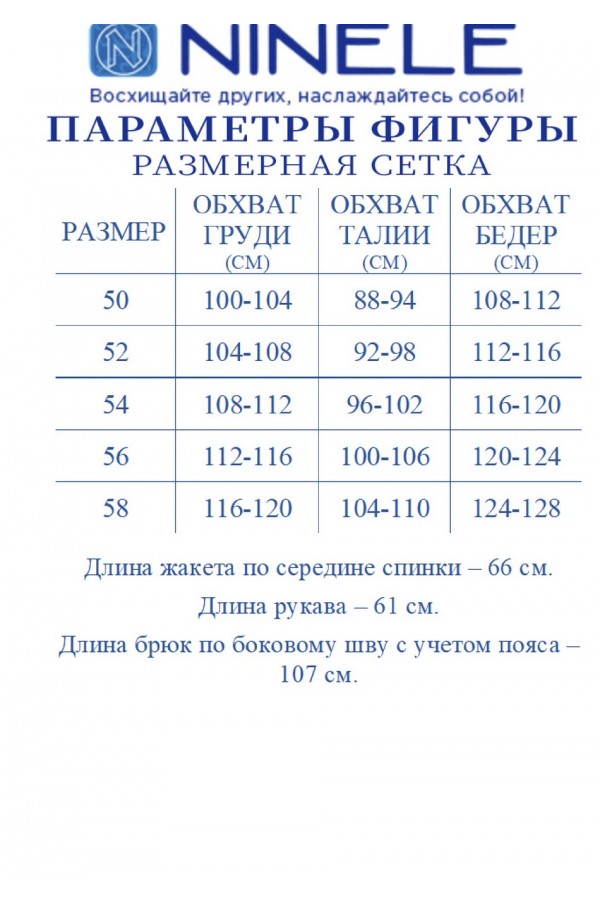 Этот костюм станет безупречным решением как для деловых встреч и офисных будней, так и для торжественных мероприятий и праздничных выходов. Акцентом модели служит асимметричная спинка со шлицей на декоративных пуговицах, которая придает образу строгость и изысканность. Костюм станет надежной основой стильного гардероба современной женщины — он легко адаптируется под разные случаи, сохраняя ощущение уверенности и элегантности в любом образе. Костюм брючный 2-х предметный, состоящий из жакета и брюк. Жакет двубортный, полуприлегающего силуэта, выполнен из костюмной поливискозы. Модель на подкладке, с плечевыми накладками. Спереди обработаны рельефные швы, направленные от пройм до низа; в нижней части переда расположены прорезные карманы с клапаном. Перед со смещенной внешней застежкой на 2 декоративные пуговицы и внутренней на 2 потайные. Спинка асимметричная, с одним вертикальным рельефным швом, направленным от правого плечевого до низа; в шве обработана высокая шлица с застежкой на 2 декоративные пуговицы. Воротник пиджачного типа. Рукав длинный, втачной; в нижней части локтевого шва – имитация шлицы с застежкой на 3 пуговицы. Длина жакета - 66 см; длина рукава - 61 см. Брюки классические, с кантами и посадкой на талии, выполнены из костюмной поливискозы. Модель с центральной застёжкой на тесьму-«молнию», на притачном поясе, застегивающемся на петлю и пуговицу. Передние и задние половинки брюк с талиевыми вытачками, направленными от пояса вниз. Спереди обработаны боковые наклонные карманы. Для лучшего прилегания брюк в области талии в поясе по задним половинкам вставлена эластичная лента. Длина брюк по боковому (с поясом)-107 см.