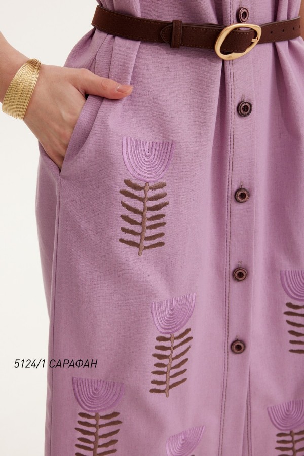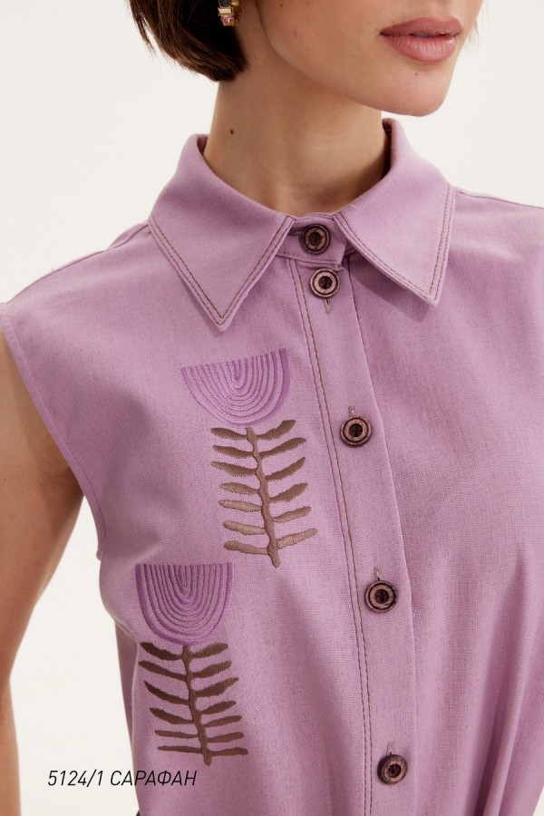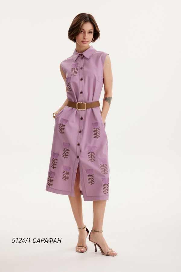 Стильный женский сарафан . Сарафан полуприлегающего силуэта с рубашечным воротником. Перед с застёжкой на петли и пуговицы по планке. Пояс в комплекте. Перед сарафана декорирован дизайнерской вышивкой.