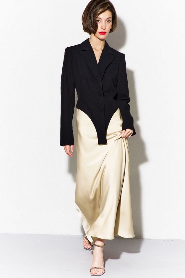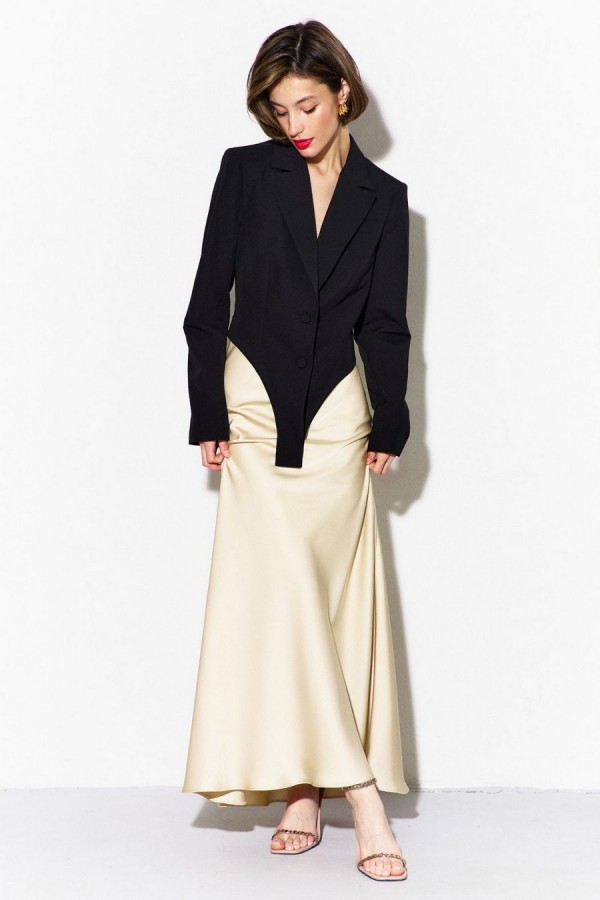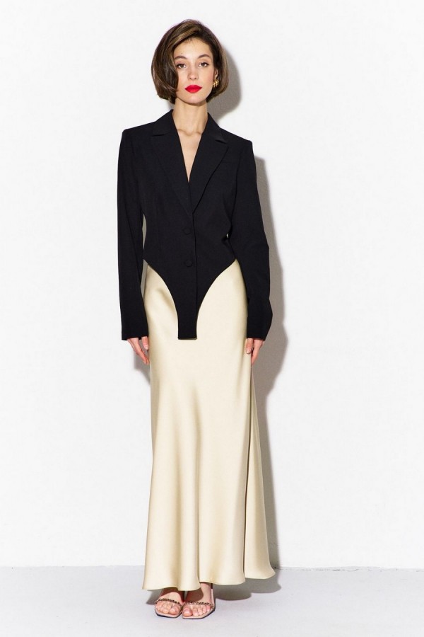 Состав:юбка-атлас 65% ПЭ, 32% вискоза, 3% спандекс Жакет-костюмная ткань 65% вискоза, 32% ПЭ, 3%спандекс
