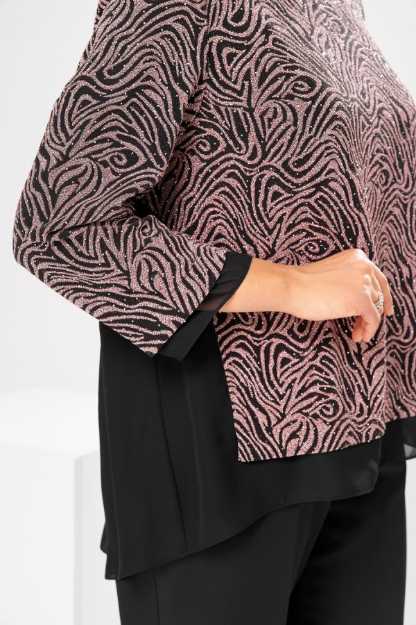 Состав:Блузон 95% ПЭ, 5% Спандекс. Брюки 70% ПЭ, 25% Вискоза, 5% Спандекс