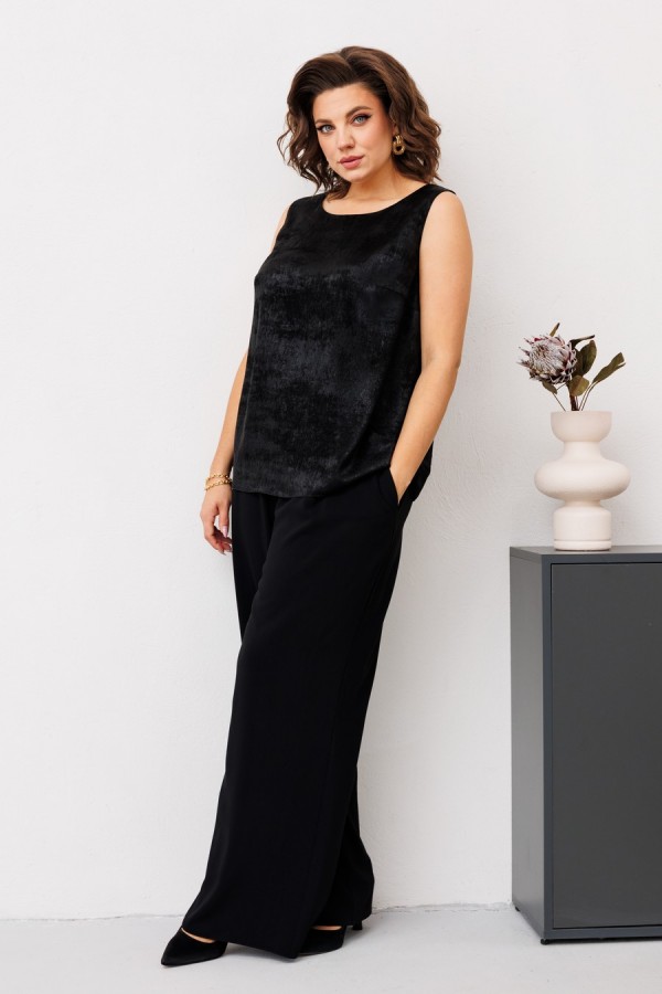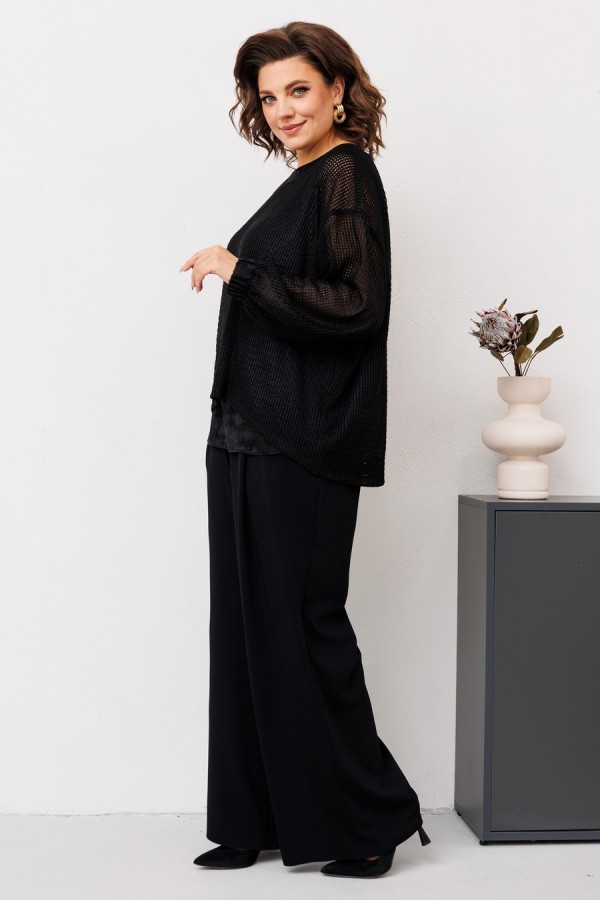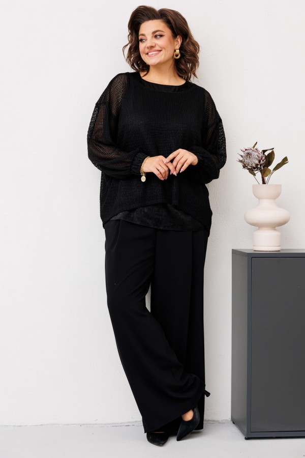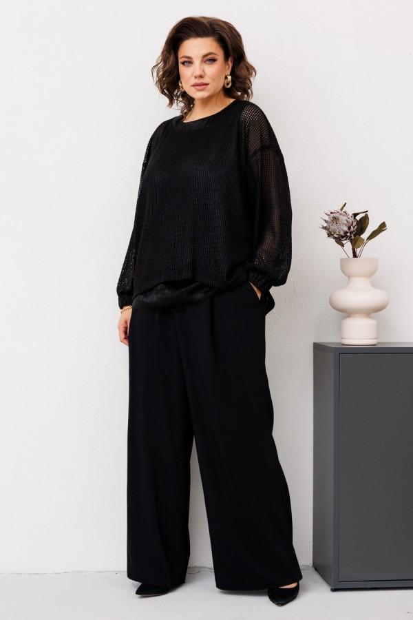 Состав:Джемпер 85% ПЭ, 10% хлопок, 5% спандекс. Топ 100% ПЭ. Брюки 85% ПЭ, 15% вискоза.