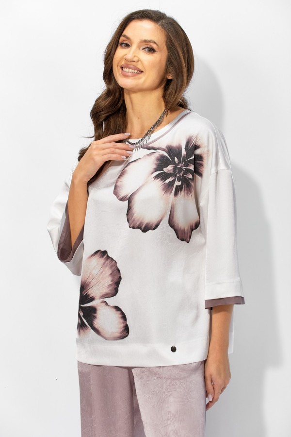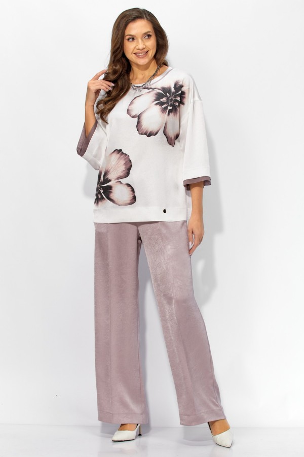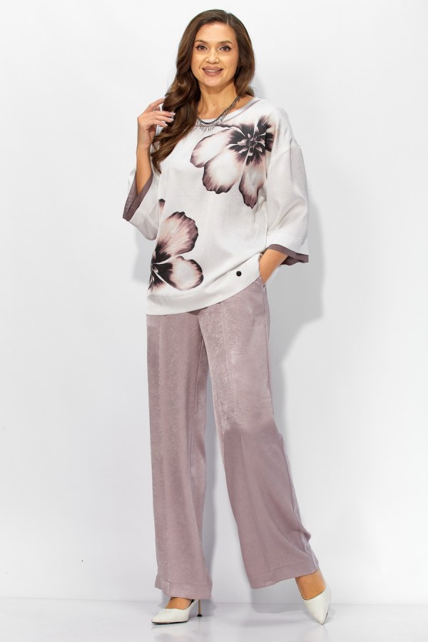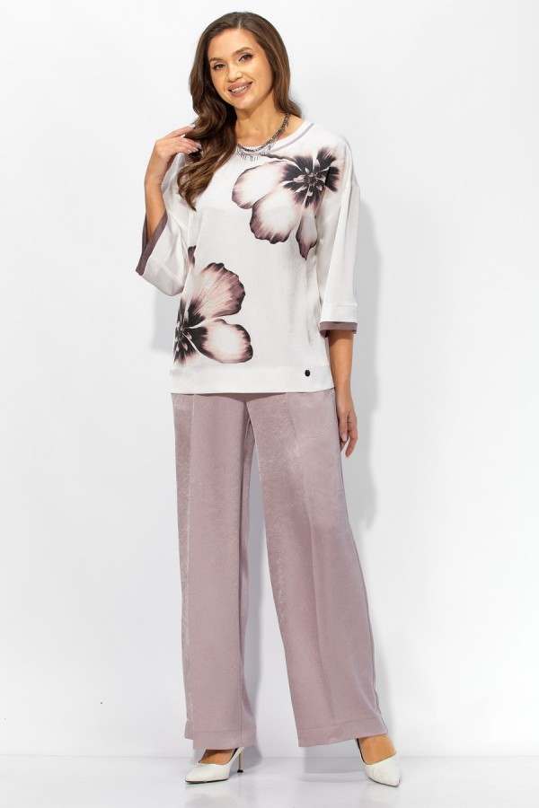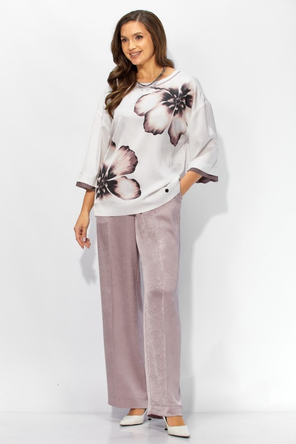 Состав:Блуза – полиэстер 70%, вискоза 26%, эластан 4%. Брюки – полиэстер 70%, вискоза 26%, эластан 4%