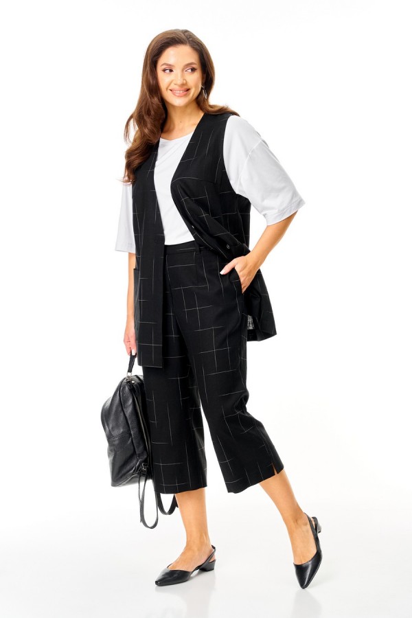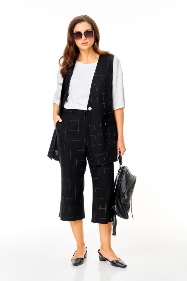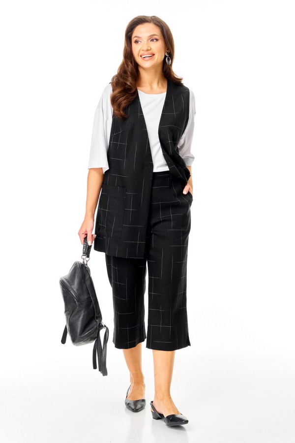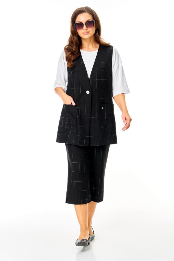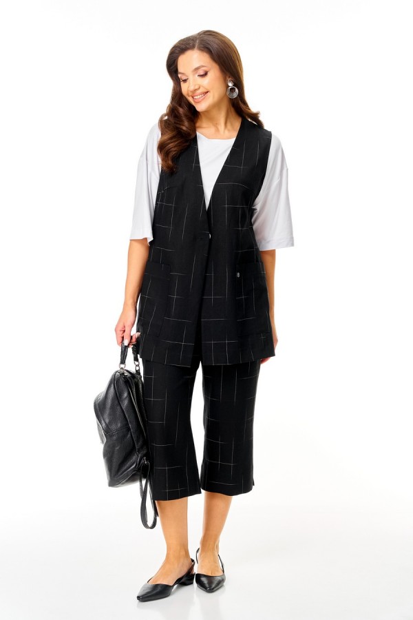 Состав:жилет, брюки - лён 74%, вискоза 26; футболка - вискоза 100%.