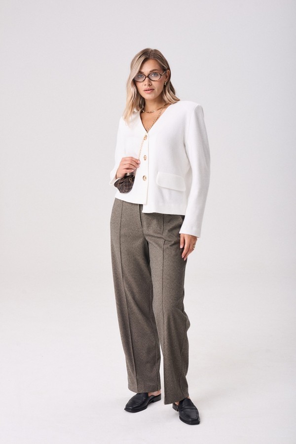 Состав:Верхполиэстер 50%, вискоза 45%, спандекс 5%Брюки60% ПЭ,37% Вискоза3% Спандекс