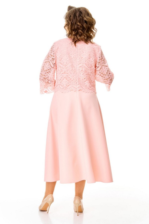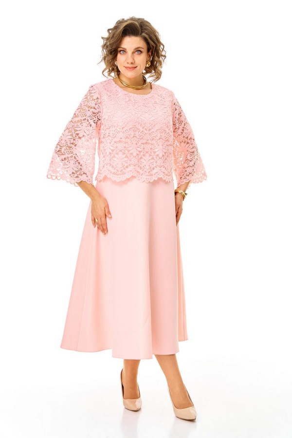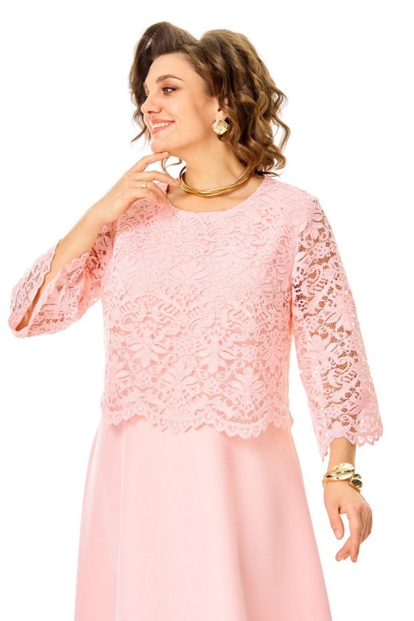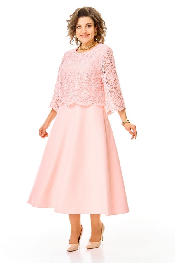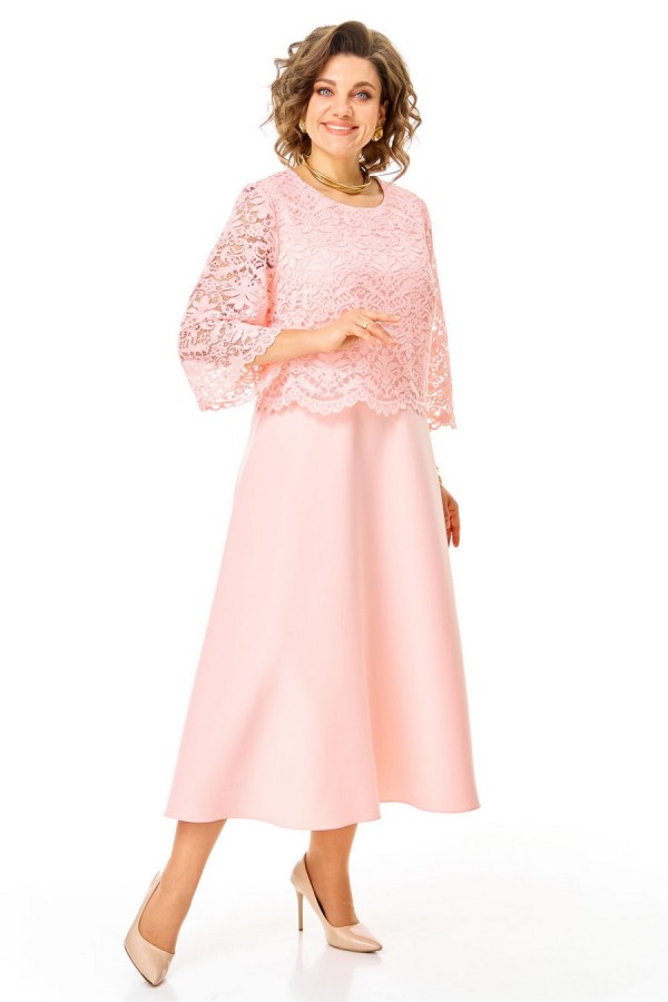 Платье женское полуприлегающего силуэта расширенное к низу с естественной линией плеча.Рукав втачной расширенный к низу, длинной 3/4 из кружевного полотна.Горловина округлой формы.Перед и спинка отрезные по линии талии с нагрудной и талевыми вытачками.Верхняя часть платья выполнена из кружевного полотна premium качества, придающего нарядности платью.В среднем шве спинки застежка на тесьму-молнию.Данное платье подойдет на любое торжество.