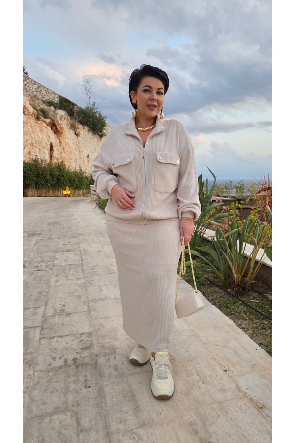 Состав: 96% полиэстер, 4% спандекс, подкладка 100% полиэстер. Юбка‑миди из трикотажа «лапша» — это мягкая уверенность в каждом шаге. Её вертикальный рубчик словно выстраивает силуэт, делая образ одновременно женственным и сдержанным. Это вещь для тех, кто ценит простоту с характером: ненавязчивая, но запоминающаяся. Материал: эластичное трикотажное полотно с тонким продольным рельефом — «лапша» придаёт поверхности приглушённую игру света и легкую тактильную глубину. Длина: миди — до середины икры или чуть ниже колена, идеальная длина для баланса между элегантностью и повседневностью. Юбка прямого силуэта длины «миди», с цельнокроеным поясом на резинке, что обеспечивает максимально удобную посадку на фигуру. В среднем шве заднего полотнища юбки разрез. Юбка на подкладке. Длина юбки 85 см.