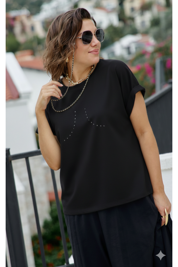 Состав: 60% вискоза, 35% полиамид, 5% спандекс. Блуза из трикотажа, немного расширена к низу, с цельнокроеными рукавами и отворотами. Спереди выполнена аппликация из страз разного размера. Блуза подойдет для прогулок, посиделок с друзьями, похода в кафе и отдыха. Модель свободного кроя органично впишется в гардероб, всегда будет элегантной и уместной, эта модель «вне времени» и будет актуальна в следующих сезонах. Блуза комфортна в носке на каждый день, создает женственный, игривый и элегантный образ. Мы используем материалы высокого качества, делаем акцент на фигуру и современный крой, что позволяет нашим изделиям не терять актуальности, а для вас служить выгодным приобретением. Длина блузы 62 см, длина рукава 26,5 см (р 52-56), 29,5 см (р 58-62).