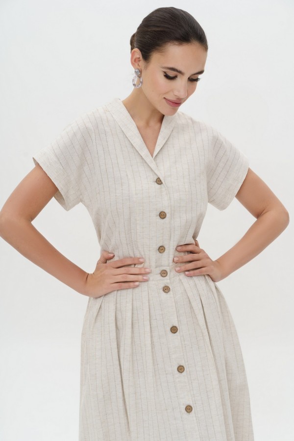 Стильный и легкий юбочный костюм из льняной ткани – идеальный выбор для летних дней. Он обеспечивает комфорт и прохладу, позволяя коже дышать.Этот костюм станет незаменимой частью вашего гардероба, покоряя своей легкостью, комфортом и универсальным стилем. Костюм женский двухпредметный из смесовой плательной ткани, состоит из блузы свободного покроя и юбки А-образной формы. Блуза с центральной бортовой застежкой на 3 петли и пуговицы (размер и цвет фурнитуры может незначительно отличаться от фото) с цельнокроеным коротким рукавом, низ рукава обработан притачной манжетой. Горловина V-образной формы, обработана шалевым воротником. Низ блузы асимметричный, слегка укорочен по переду. Юбка женская на подкладке с центральной застежкой на 6 петель и пуговиц, расположенных на притачной планке. По талиевому срезу юбки заложены односторонние складки. В боковых швах расположены карманы. Верхний край юбки обработан притачным поясом, застегивающимся на 1 петлю и пуговицу (размер и цвет фурнитуры может незначительно отличаться). Длина юбки миди. Состав изделия: полиэстер - 39%, вискоза - 32%, лен - 29%. Состав подкладки юбки: хлопок 100% 42 размер Блуза Длина блузы по среднему шву спинки – 57,0 см (±2,0 см), Ширина блузы на уровне глубины проймы – 48,0 см (±1,0 см), Ширина блузы на уровне линии талии – 49,0 см (±1,0 см), Ширина блузы на уровне линии низа – 50,0 см (±1,0 см),Высота манжеты– 4,0 см (±0,5 см) Длина спущенного рукава блузы – 22,0 см (±0,5 см). Юбка Длина юбки посередине спинки с поясом – 86,0 см (±2,0 см), Ширина юбки на уровне линии талии – 34,0 см (±1,0 ),Ширина юбки на уровне линии низа – 123,0 см (±1,0 ), Высота пояса – 3,0 см (±0,5 см). 44 размер Блуза Длина блузы по среднему шву спинки – 57,0 см (±2,0 см), Ширина блузы на уровне глубины проймы – 50,0 см (±1,0 см), Ширина блузы на уровне линии талии – 51,0 см (±1,0 см), Ширина блузы на уровне линии низа – 52,0 см (±1,0 см),Высота манжеты– 4,0 см (±0,5 см) Длина спущенного рукава блузы – 23,0 см (±0,5 см). Юбка Длина юбки посередине спинки с поясом – 86,0 см (±2,0 см), Ширина юбки на уровне линии талии – 36,0 см (±1,0 ),Ширина юбки на уровне линии низа – 125,0 см (±1,0 ), Высота пояса – 3,0 см (±0,5 см). 46 размер Блуза Длина блузы по среднему шву спинки – 57,0 см (±2,0 см), Ширина блузы на уровне глубины проймы – 52,0 см (±1,0 см), Ширина блузы на уровне линии талии – 53,0 см (±1,0 см), Ширина блузы на уровне линии низа – 54,0 см (±1,0 см),Высота манжеты– 4,0 см (±0,5 см) Длина спущенного рукава блузы – 24,0 см (±0,5 см). Юбка Длина юбки посередине спинки с поясом – 86,0 см (±2,0 см), Ширина юбки на уровне линии талии – 38,0 см (±1,0 ),Ширина юбки на уровне линии низа – 127,0 см (±1,0 ), Высота пояса – 3,0 см (±0,5 см). 48 размер Блуза Длина блузы по среднему шву спинки – 58,0 см (±2,0 см), Ширина блузы на уровне глубины проймы – 54,0 см (±1,0 см), Ширина блузы на уровне линии талии – 55,0 см (±1,0 см), Ширина блузы на уровне линии низа – 56,0 см (±1,0 см),Высота манжеты– 4,0 см (±0,5 см) Длина спущенного рукава блузы – 25,0 см (±0,5 см). Юбка Длина юбки посередине спинки с поясом – 87,0 см (±2,0 см), Ширина юбки на уровне линии талии – 40,0 см (±1,0 ),Ширина юбки на уровне линии низа – 129,0 см (±1,0 ), Высота пояса – 3,0 см (±0,5 см). 50 размер Блуза Длина блузы по среднему шву спинки – 58,0 см (±2,0 см), Ширина блузы на уровне глубины проймы – 56,0 см (±1,0 см), Ширина блузы на уровне линии талии – 57,0 см (±1,0 см), Ширина блузы на уровне линии низа – 58,0 см (±1,0 см),Высота манжеты– 4,0 см (±0,5 см) Длина спуще